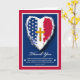 Obrigado, cartão de saudação em papel para bombeiros. A carta tem um tema cristão com um verso Bíblia de Daniel 3:17 no cobrir. Imagem de um coração decorado com as cores, estrelas e listras da bandeira americana. Design preto e patriótico em vermelho, branco e azul com uma cruz em tons de ouro. Arte, imagem e direitos de autor © Shoaff Ballanger Studios.