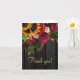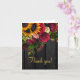 Obrigado elegante e russo seu modelo em fundo de madeira marrom-escura apresentando lindos buquês de girassol e rosas de burlões.