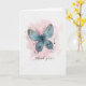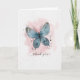 Cartões de agradecimentos com borboleta de aquarela no estilo de rabisco; fundo falso parece ser papel de aquarela.