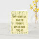 Este Dia das Mães, traga um sorriso para o rosto da sua mãe com a astuta redação "Providing Me Heartsense Madre's Day Card". O cartão diz, "Feliz Dia das Mães, Obrigados por me prover ventre e conselho anos atrás," oferecendo uma reviravolta espirituosa na frase ‘quarto e conselho’ para expressar sua gratidão por todo o amor e cuidado que ela tem dado desde o primeiro dia. É uma maneira humorística, mas comovente, de reconhecer as inúmeras formas como ela o apoiou ao longo dos anos. Perfeito para mães com bom senso de humor e cheio de amor!