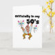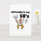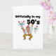Se você está procurando um 50th cartão de aniversário cómico, caneca, t-shirt, botão, ou o outro 50th artigo do aniversário você amará este design bonito que caracteriza um homem no chapéu da festa de aniversário que guardara um vidro do champanhe e do texto que lê "oficialmente em meu 50"!