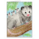 ACEO de uma boa mãe de gambá, pregada em um galho de árvore, com suas tripletas nas costas. Pintado com grafite solúvel em água e lápis de aquarela Dergotados.