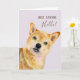 Esta é uma pintura aquosa de um shiba inu que coloca a cabeça para fora do lado com a boca ligeiramente aberta. O texto é editável e diz "Apenas dizendo Olá!"