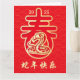Este design elegante de Ano Novo apresenta uma cobra dourada em um caractere chinês "primavera" com um padrão de onda oriental em um fundo vermelho.