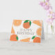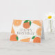 Este cartão de aniversário fofo e moderno apresenta laranjas e fatias de laranja num fundo creme. Personalize-o para as suas necessidades. Você pode encontrar produtos correspondentes na minha loja.