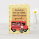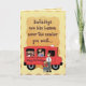 Os " aniversários são como ônibus: nunca o número que você quer!" Um cartão de aniversário engraçado, mostrando um grande ônibus vermelho com "o feliz aniversario" escrito no lado. lotes dos there´s dos passageiros que olham fora das janelas, acenando e guardarando flores, e um menino que guardara uma parte externa ereta do presente de aniversário com o motorista. Um cartão de aniversário cómico, customizável pndo seu próprio texto para dentro.