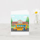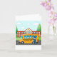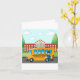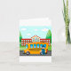 Um ônibus escolar e seu motorista fora de uma escola. Este design parece realmente eficaz com este Cartão de Saudação