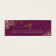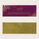 Este cartão miniatura é perfeito para adicionar um endereço online do Rsvp aos seus convites para o casamento. Possui um elegante ameixa magenta ou design de cor roxa de morango com caramujos de folha fina de ouro e espirais e caligrafia com leitura de RSVP. Há espaço para o URL do seu site e um prazo de resposta. O fundo é uma bela cor dourada marmoreada.