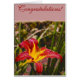 Uma fotografia de um lírio do dia vermelho e amarelo, com gotas de água nas pétalas e folhas.