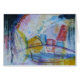Uma pintura abstrata da aguarela de uma cidade do lado do rio.