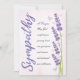 Encorajar alguém lutando pela perda de um ente querido com esta design única que apresenta uma grande manchete vertical, "Simpatia", seguida por esta mensagem: "Que Deus conforte o seu coração lutador?, alimente a sua dor e tristeza, e rodeie-o com paz." Lavanda de fundo, borboleta e ilustração floral sobre fundo de textura aquosa. De volta está uma mensagem totalmente editável, "Meus pensamentos e orações estão com você. Espaço reservado abaixo para seu nome. A parte inferior do cartão inclui um verso bíblia totalmente editável; "Abençoados são aqueles que choram, pois devem ser confortados. Matthew 5:4."