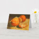 Greeting card featuring a traditional still life painting of oranges. Artwork: Oil pastel. Copyright: Dominic A. White.