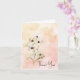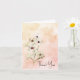 Buquê de caixa de aquarela em um fundo de cor d'água laranja e cor-de-rosa com o obrigado do texto. Todo texto é editável.