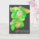 Arte floral moderna das flores de aquarelas, de Sacha Grossel, de uma flor de orquídea com um sistema de design de cor de limão e limão de citrinos. Arte moderna e colorida com saudação de aniversário