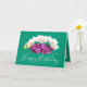 Buquê maravilhoso de orquídeas brancas e flores cor-de-rosa de pénia contra um fundo cor verde-esmeralda. O texto de saudação de aniversário usa uma fonte de tipografia de script atraente. As flores cobrir a frente deste cartão que pode ser usado como cartões de agradecimentos, cartão de aniversário ou qualquer outro cartão de sua escolha. Personalize-o com o seu texto e/ou imagens para torná-lo de um tipo!