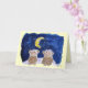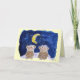 Os macacos bonitos dos desenhos animados estão sentando-se sob uma lua da banana com uma noite estrelado das estrelas sparkling em um momento especial que comemoram junto seu aniversário. O interior engraçado do provérbio lê: "Bananaversary feliz!" e então igualmente "eu sou tão contente nós encontramo-nos"