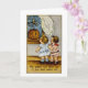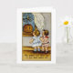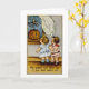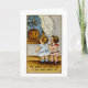 Vintage Halloween ilustrando um cartão de saudação mostrando uma criança olhando para um jack o'lantern na janela.