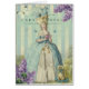 Os printemps do au de Lilas, traduzidos significam simplesmente Lilacs no primavera. Acordos de vista muito franceses românticos desta colagem do chique de uma placa de forma do século XVIII do vintage, uma imagem encantador do vintage de um cão pequeno em um coxim, borboletas e lilacs. Todos colocaram sobre um fundo azul e de creme listrado. ©Wickedly bonito, todos os direitos reservados.