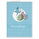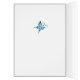 Eine schöne Ostergrußkarte mit einem blauen Schmetterling und einem grünen Osterei mit weißen Blumen und einem rosa Banda.