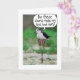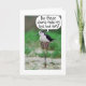 Um pássaro de pernas compridas não gosta do jeito que as pernas parecem em seus novos shorts. Imagem engraçada de pássaro de pernas compridas vestindo calções de xadrez malucas. Cartão de Aniversário engraçado para homens.