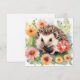 Cartão Ouriço-cacheiro em aquarela e Flores