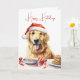 Cachorro do Varejista de Ouro d'água com chapéu de Natal, biscoitos e texto de feriados felizes. Todo o texto pode ser alterado.