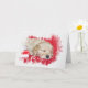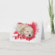 Um filhote de ouro bonito dormindo em um cobertor vermelho com um presente de feriado em um fundo branco de abstrato.
