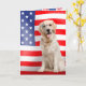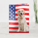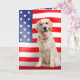 Óculos de bandeira no Ouro Retriever cão com fundo de bandeira americano em 4 de julho.