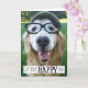 É um dia feliz! Esta carta apresenta uma fotografia de um sorridente cão que recupera ouros que está vestindo um chapéu e óculos. Texto na frente lê: "Get Your Happy On!" enquanto o texto personalizável do dentro diz: "Espero que você tenha um dia excelente!"