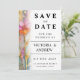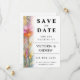 Deixe uma impressão duradoura com este lindo cartão de save the date que celebra seu amor com estilo. O padrão floral ousado chama a atenção, convidando seus convidados para uma celebração inesquecível. Combine-o com papelaria coordenada para um visual coeso e sofisticado que reflete a estética do seu casamento.