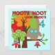 Coruja 4ª t-shirts de aniversário, fatos-chave, canecas, ímanes, guardas, posters, bolsas e mais com uma coruja, muitas árvores, e texto que diz "Hooty Hoot Look Whoo 4"!