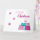 Corações brilhantes e divertidas em pacotes de compro de férias, quedas de neve e uma mensagem de Natal alegre.
