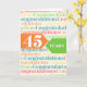 Este é um cartão colorido de Parabéns de 45 Anos de Aniversário do Funcionário. O padrão dos parabéns de fundo apresenta a palavra repetida 'Parabéns gravados em vermelho, laranja, amarelo, verde e jade contra um fundo branco. O texto "45 anos" figura em duas etiquetas pontiagudas, colocadas centralmente, uma em laranja e outra em verde, com uma sombra para dar a ilusão dos rótulos que se destacam do fundo. Uma design colorida, mas simples e atraente. Natalie Kinnear Cards Este cartão também pode ser adquirido na minha loja online com o Greeting Card Universe, que tem parceiros de impressão nos EUA e no Reino Unido: http://www.greetingcarduniverse.com/business/employeerelations/employeeanniversary/yearsofservicespecific/otheryearsofservice/employee-anniversary-45-years-1527970?gcu=47771017551