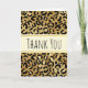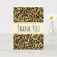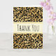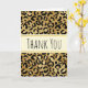 Agradeço-lhe o cartão de boas-vindas com um padrão de na moda com manchas-leopardo exóticas em preto sobre fundo dourado. Um quadro retangular colorido creme com uma borda falsa de folha de ouro colocada sobre cima com o obrigado que você escreveu dentro.