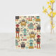 Cartão Padrão Ilustrado de Retrorrorobôs Diversos (Creme)