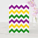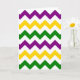 Padrão verde multicolor, roxo, ouro e ziguezague branco nas cores de Mardi Gras.