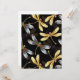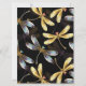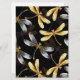 Padrão sem costura com ouro, joias, libélulas brilhantes com asas brilhantes e detalhadas sobre fundo preto. Dourada libélula.