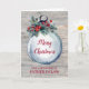 Feliz Natal para o pai num cartão de direito com padrão rústico de madeira de galinheiro e enfeites de natal de aquarela com folhagem de inverno e cola.