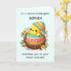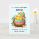 Torne a primeira Páscoa extra especial da sua filha com um cartão personalizado! Um pintinho de bebê querido eclode do seu ovo, rodeado por flores coloridas de primavera, trazendo alegria e calor a esta ocasião especial. Com o nome dela na frente, esta carta adorável é uma bela maneira de comemorar sua primeira Páscoa e lembrá-la do amor e bênçãos que ela traz à sua vida.