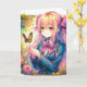 Anime garota com borboleta bonito aquarela personalizada cartão de aniversário de menina. Dentro de cartão é uma página de cores surpresa.
