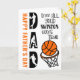 Belo cartão de dia de os pais de bola de basquete engraçado. A design é escrita com Pai Feliz Dia de os pais em tipografia de tamanho excessivo, decorada com silhuetas de jogador de basquete. O trocadilho divertido lê "que todos vocês se tornem realidade" na tipografia decorativa com uma ilustração de uma bola de basquete indo na rede. O modelo está configurado para que você adicione seu dentro de saudação personalizado.