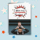 Cartão de Dia de os pais de Cartoon de Super Herói de Pai Divertido. A foto está na frente e na parte traseira da placa - adicione sua foto. O texto está em uma bolha de super-heróis. Personalize o dentro de mensagem ou apague-o.