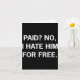 Cartão Paid No I Hate Him For - Funny Sarcasm