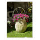 Um belo cheio de vaso rural de flores roxas se coloca contra uma queda de trás de uma roda de vagão-do-campo. Este cartão é vazio deixado para você se personalizar para atender às suas necessidades. Use sozinho ou emparelhe com nosso carimbo de correspondência.