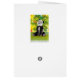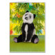 Renderização digital em 3D de um urso panda e plantas de bambu verdes num fundo colorido