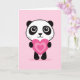 Cartão de saudação dobrado com desenhos animados ilustrando um pequeno panda segurando um grande coração sobre um fundo rosa. dentro de texto personalizável "Eu te amo"