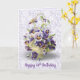 Cesta de pansy roxa com lavanda e padrão de renda branca para 60º aniversário.