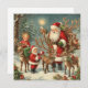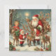 Cartão Papai Noel Antigo com Crianças, Rena e Presentes