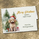 Neste cartão Holiday, um pequeno cão Poodle de damasco senta-se em frente a um fundo de floresta de aquarelas com uma árvore decorada. Os pacotes de presentes amarrados com fita vermelha estão ao seu lado. O texto dourado à direita diz "MERRY CHRISTMAS", com FELIZ ANO NOVO em verde abaixo. Todo o texto, dentro e fora, pode ser facilmente mudado para qualquer coisa que você quiser. Você pode ver mais imagens de poodle, assim como outras imagens e produtos de raças, na Aldeia de Cães.