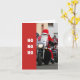 Foto de Papai Noel motociclista de moto com traje completo de Papai Noel e texto Ho Ho Ho ao lado em vermelho. O texto interno diz "Feliz Natal", mas pode ser editado se desejar.